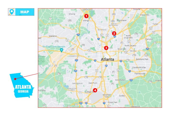 | 1 | Homewood Suites by Hilton Atlanta-Galleria/Cumberland | 3200 Cobb Pkwy, Atlanta, GA 30339 | 1King | $142~ | ○ | ○ |