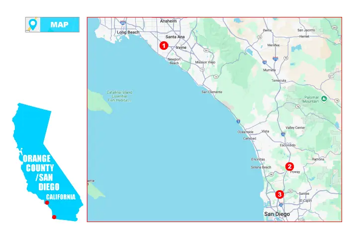 | 1 | Crowne Plaza Costa Mesa Orange County | 3131 Bristol St, Costa Mesa, CA 92626 | 1King/2Queen | $145~ | ○ | ○ | ○ |