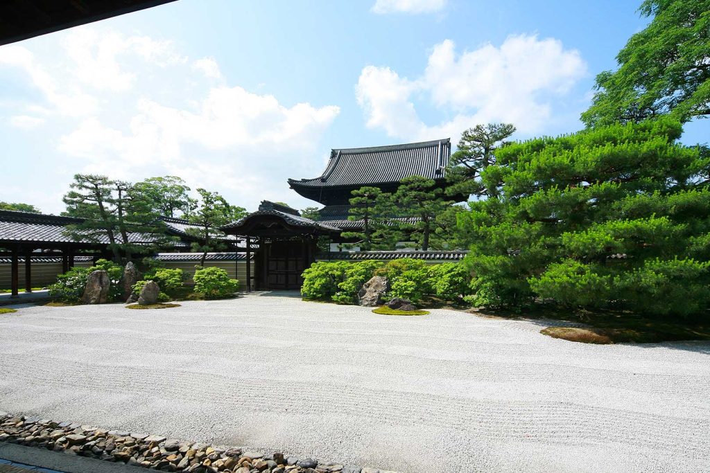 Kyoto’s oldest Zen temple, Kenninji combines deep history with striking design. Its kare-sansui garden, known as the “Circle, Triangle, Square Garden,” is a modern interpretation of tradition. The three shapes represent the essential elements of the universe, encouraging visitors to contemplate their symbolic meanings.