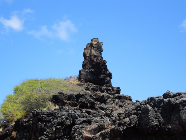 伝説の女神ペレが休んだとされる岩。波打ち際で自然の力を感じる、